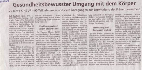 Artikel zum Fachtag in der Wetterauer Zeitung vom 11.10.24